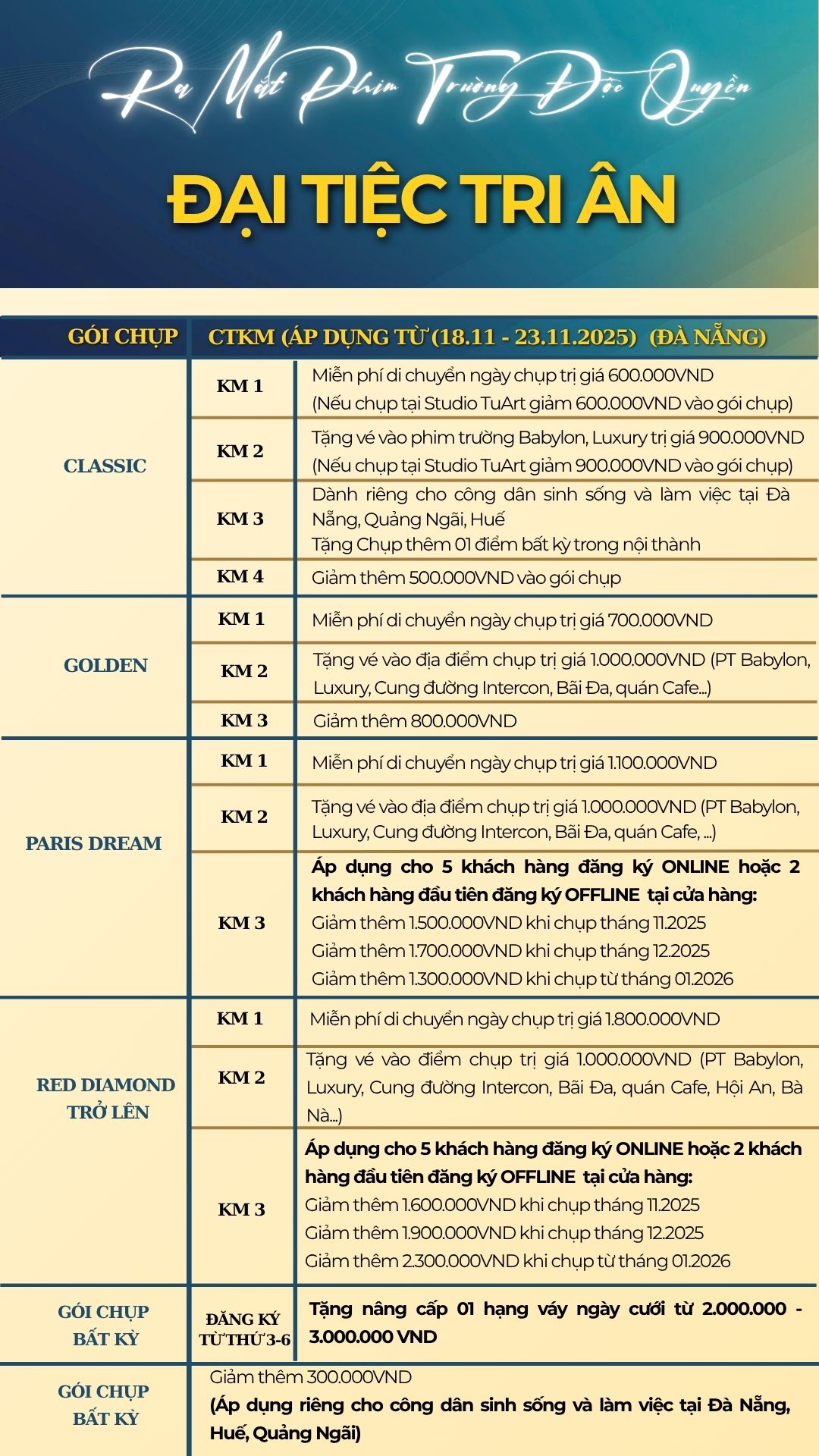 ƯU ĐÃI ĐẶC BIỆT khi khách hàng đăng ký gói chụp RED DIAMOND trở lên: