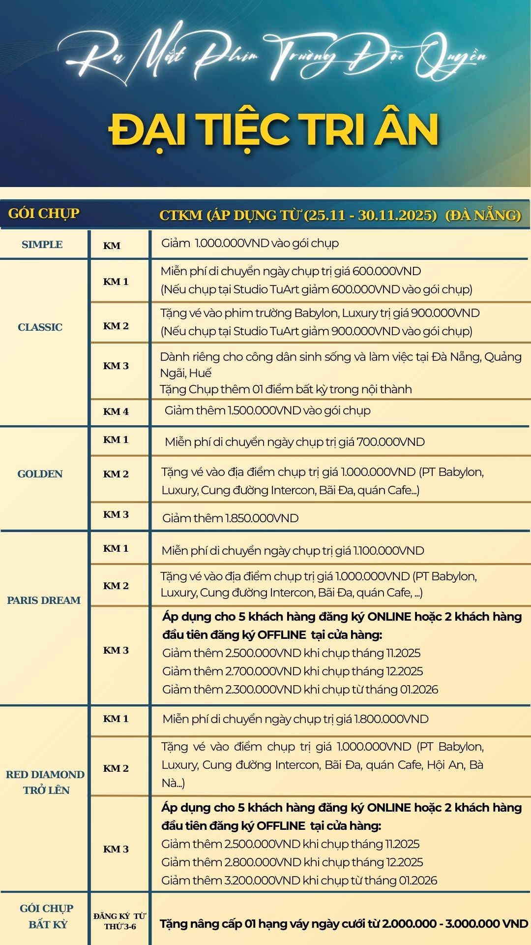 QUÀ CƯỚI ĐẶC BIỆT từ TuArt Wedding với TUẦN LỄ ƯU ĐÃI ĐẶC BIỆT LỚN NHẤT TRONG NĂM TỪ 25.11 – 30.11.2025